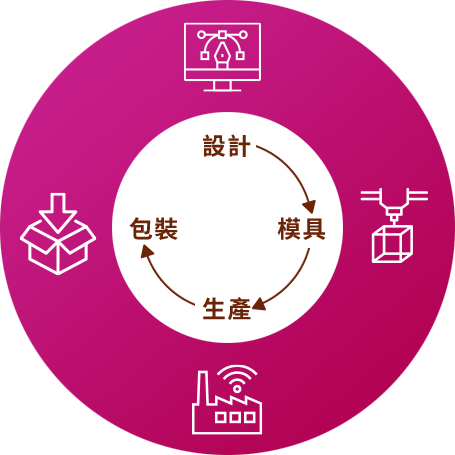 從產品設計開發、繪圖、模具製造、生產加工至成品包裝,堅持品質、管控成本,提昇效率以達客戶及公司互利為目標。