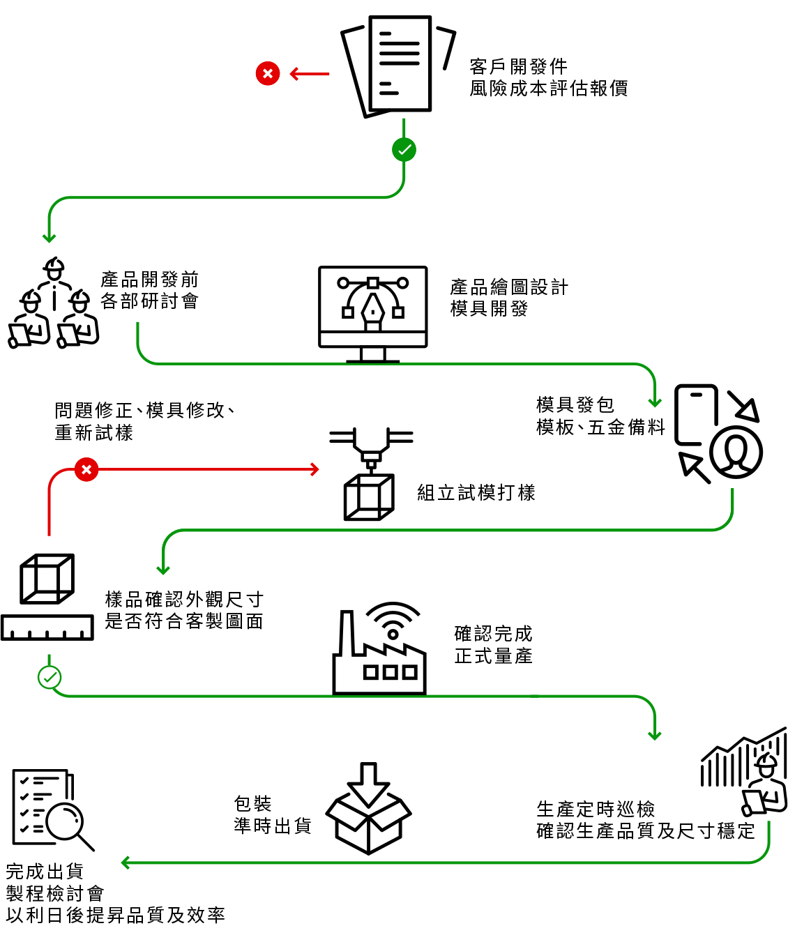 酉耀能依客戶的產品需求從無到有,設計製圖,開模製作,生產加工,包裝出貨。